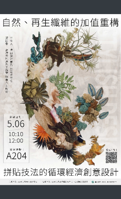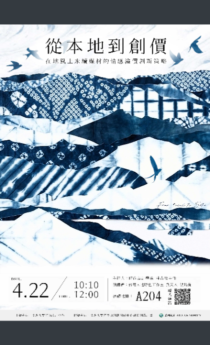 說明: 一、本校時尚設計學系辦理「染色系列講座」,兩場活動如下,惠請將活動訊息轉發貴校師生,並鼓勵踴躍報名參加,並惠予公假出席。 二、染色系列講座一:從本地到創價,在地風土永續媒材的情感溢價創新策略。 (一)日期:115年4月22日(三),上午10時至12時。 (二)地點:A204教室(亞洲大學A棟-創意設計學院大樓2F)。 (三)報名日期:即日起至115年4月20日(一),下午17:00止。 三、染色系列講座二:自然、再生纖維的加值重構,拼貼技法的循環經濟創意設計。 (一)日期:115年5月6日(三),上午10時10分至12時。 (二)地點:A204教室(亞洲大學A棟-創意設計學院大樓2F)。 (三)報名日期:即日起至115年5月4日(一),下午17:00止。 四、研習時數:凡參加研習者,核發數位研習證書。 五、聯絡人:亞洲大學時尚設計學系,聯絡電話:(04)2332-3456分機1068,E-mail:a-jen@asia.edu.tw |