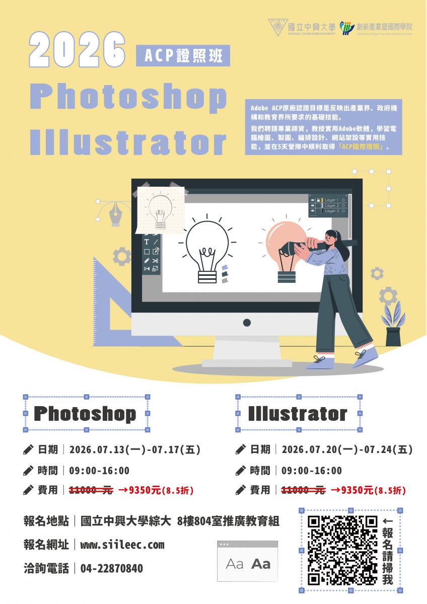 一、國立中興大學「人工智慧工程素養認證輔導」,該課程已調整為115年5月23日至6月27日每週六上課(6月20日端午連假停課)。 二、國立中興大學同步推出多項暑期熱門課程與證照輔導,包括「Python程式系列」、「人工智慧工程素養認證輔導」、「ACP國際證照-Photoshop與Illustrator考照班」、「SSE色彩學證照輔導」及「CCS生成式AI基礎能力認證班」等,內容結合理論與實作,適合國高中生探索興趣並強化專業能力。 四、檢附更新後課程簡章及招生資訊,報名請至國立中興大學創新產業暨國際學院線上報名系統(http://www.siileec.com/index.php?subject_type=38),點選「國高中生研習」加入會員後即可報名。 五、聯絡窗口:國立中興大學創新產業暨國際學院推廣教育組,電話(04)22870840。 |